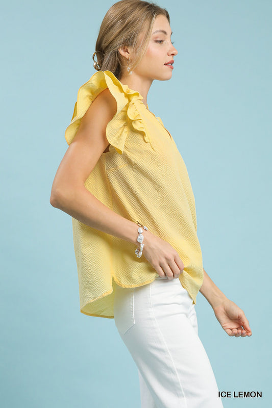 Textured Ruffle Sleeve V-Neck Blouse