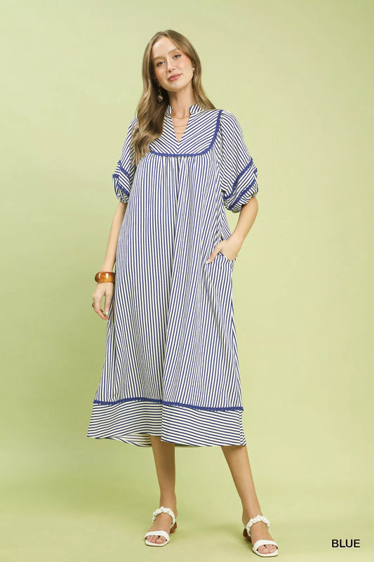 Embroidered Floral Short Sleeve Midi Dress with Contrast Trim
