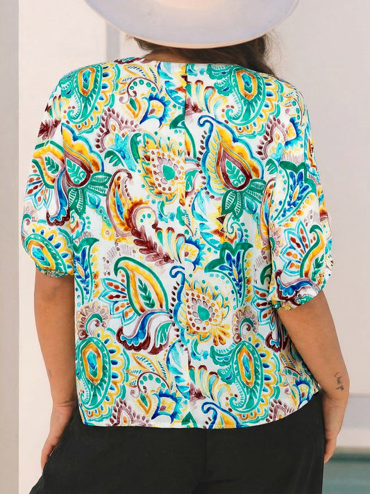 Paisley Floral Printed Puff Sleeve Blouse