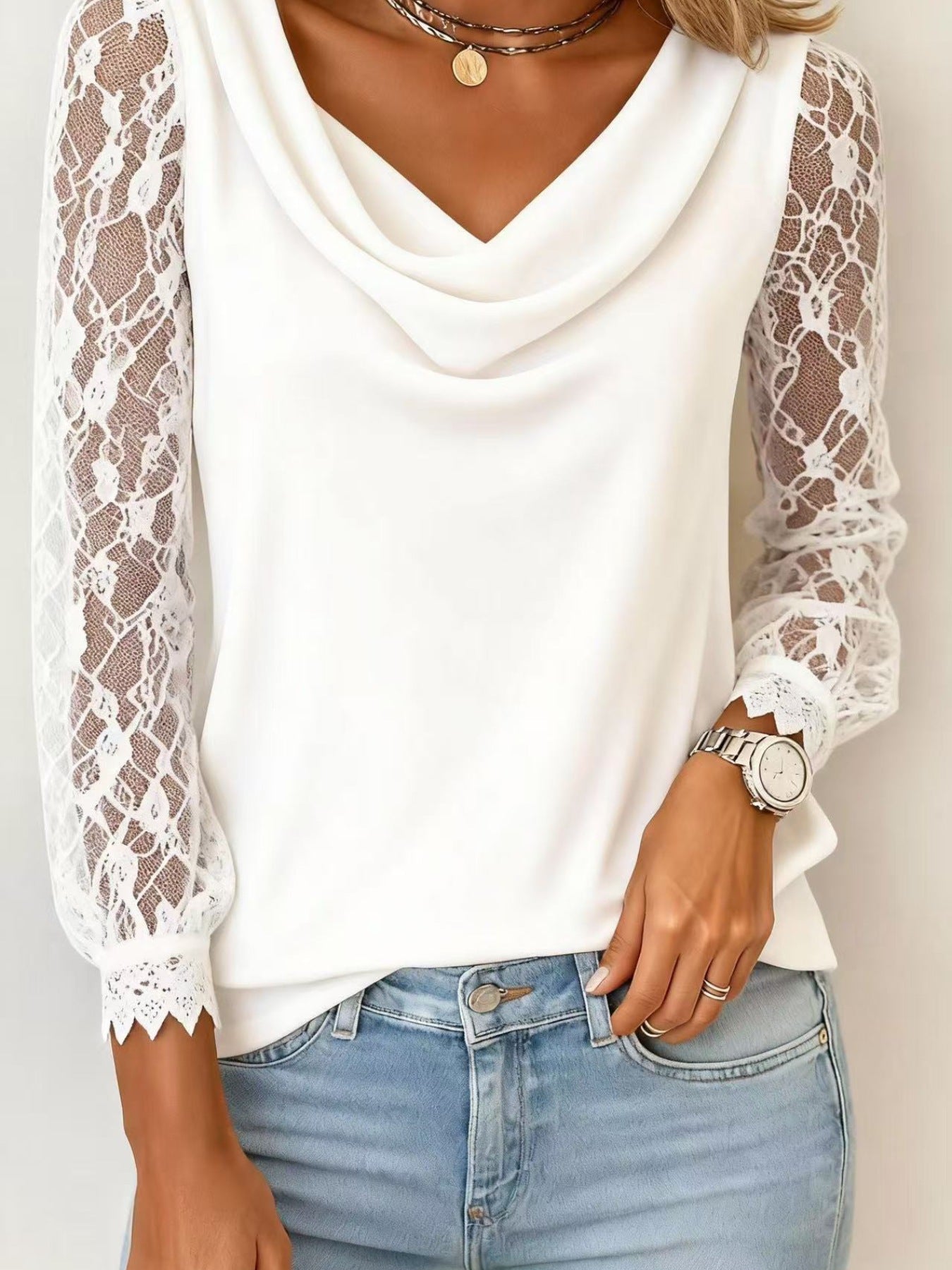 Lace Sleeve Cowl Neck Blouse