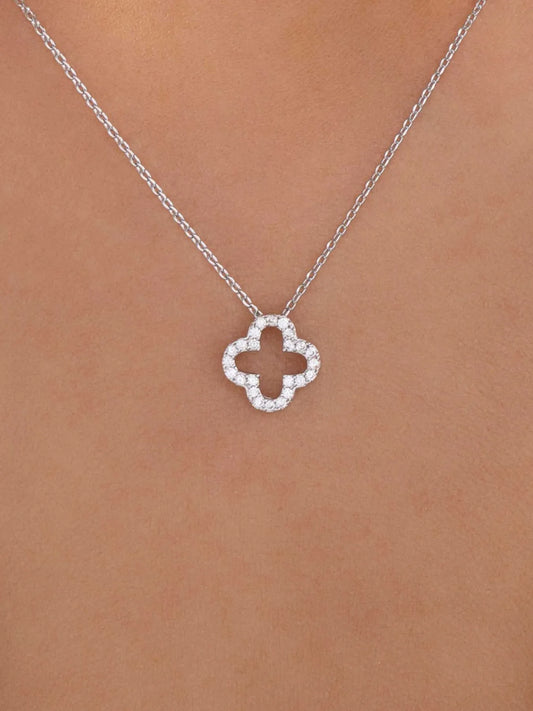Double Layered Inlaid Zircon Cross Pendant Necklace