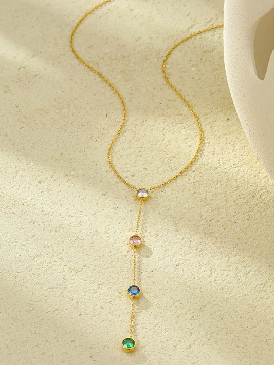 18K Gold-Plated Stainless Steel Zircon Y-Drop Necklace