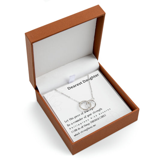 Dearest Daughter, Let this piece of jewelry be a reminder of your strength, Philippians 4:13 assures I can do all ..., Interlocking Circles Necklace