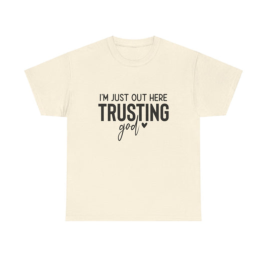 I am just out here trusting God: Unisex Heavy Cotton Tee