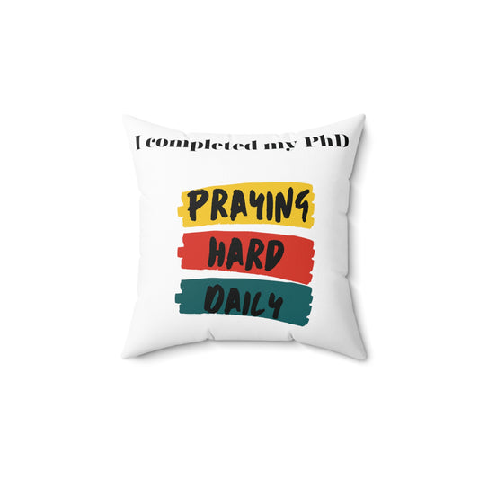 I completed my PhD, Praying, Hard, Daily, Spun Polyester Square Pillow
