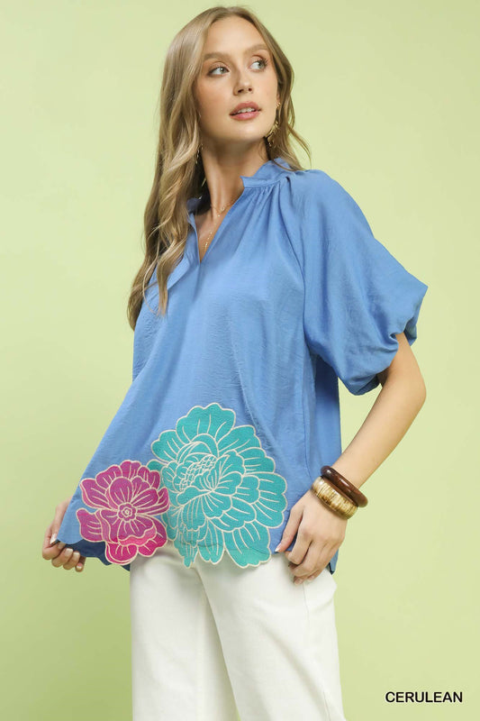 Floral Embroidered Hem Blouse