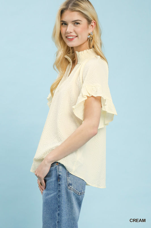 Textured Ruffle Sleeve Blouse
