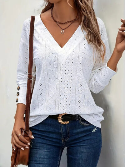 Sold outEyelet V-Neck Long Sleeve Blouse