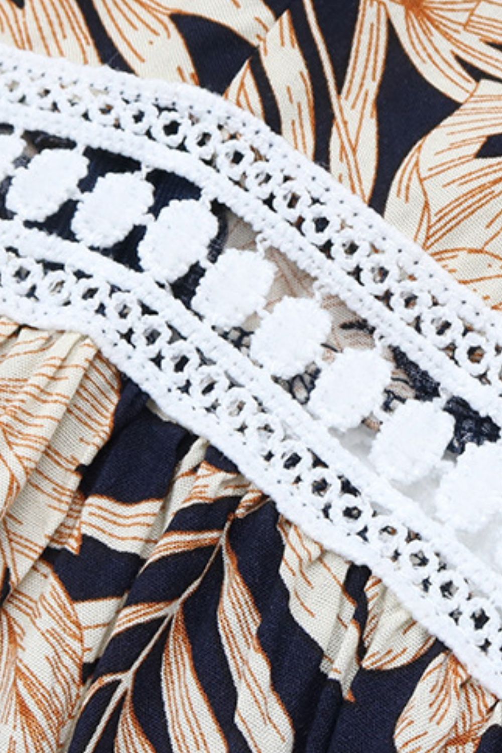 High-Low Printed V-Neck Cap Sleeve Midi Dress