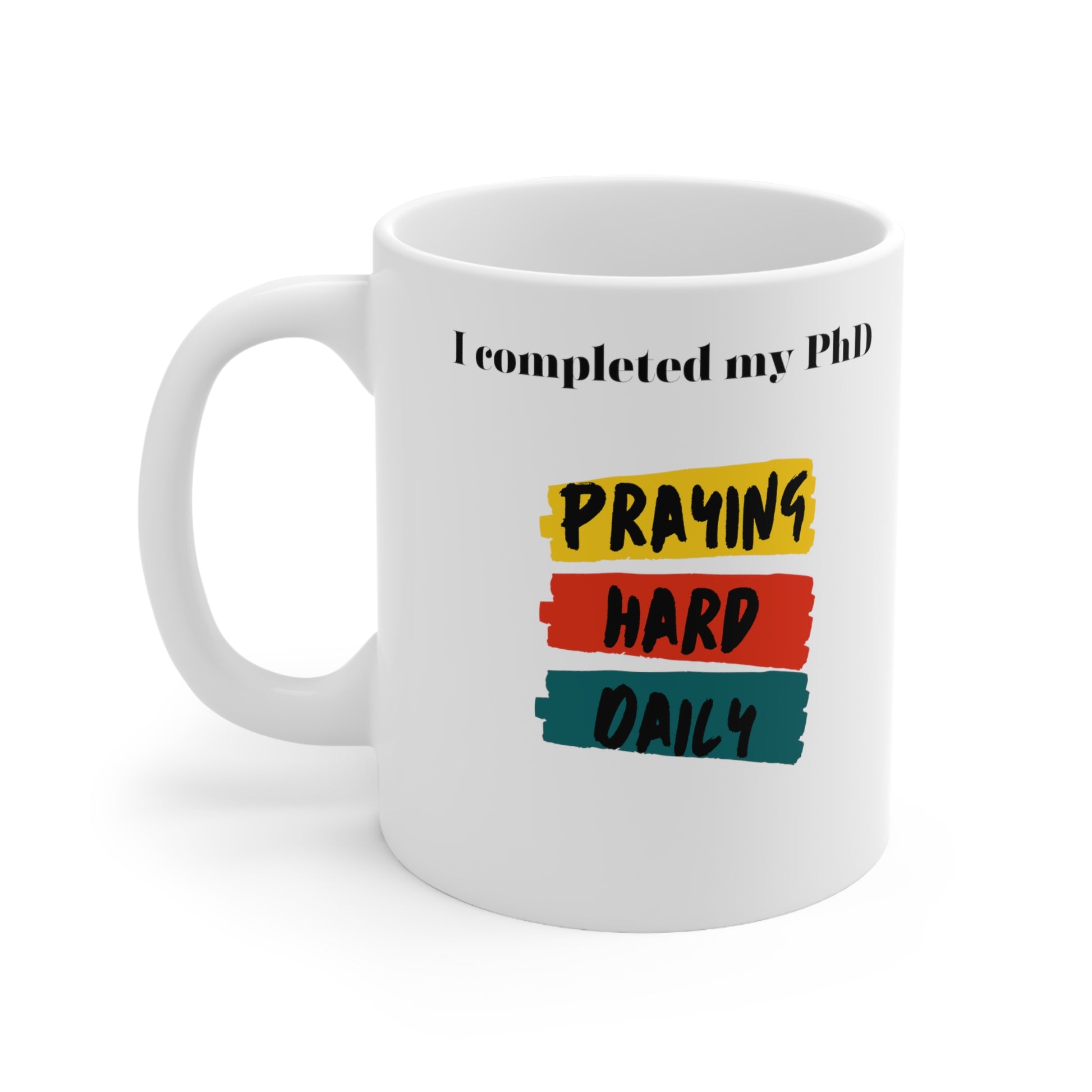 I completed my PhD, Praying Hard Daily, Ceramic Mug 11oz