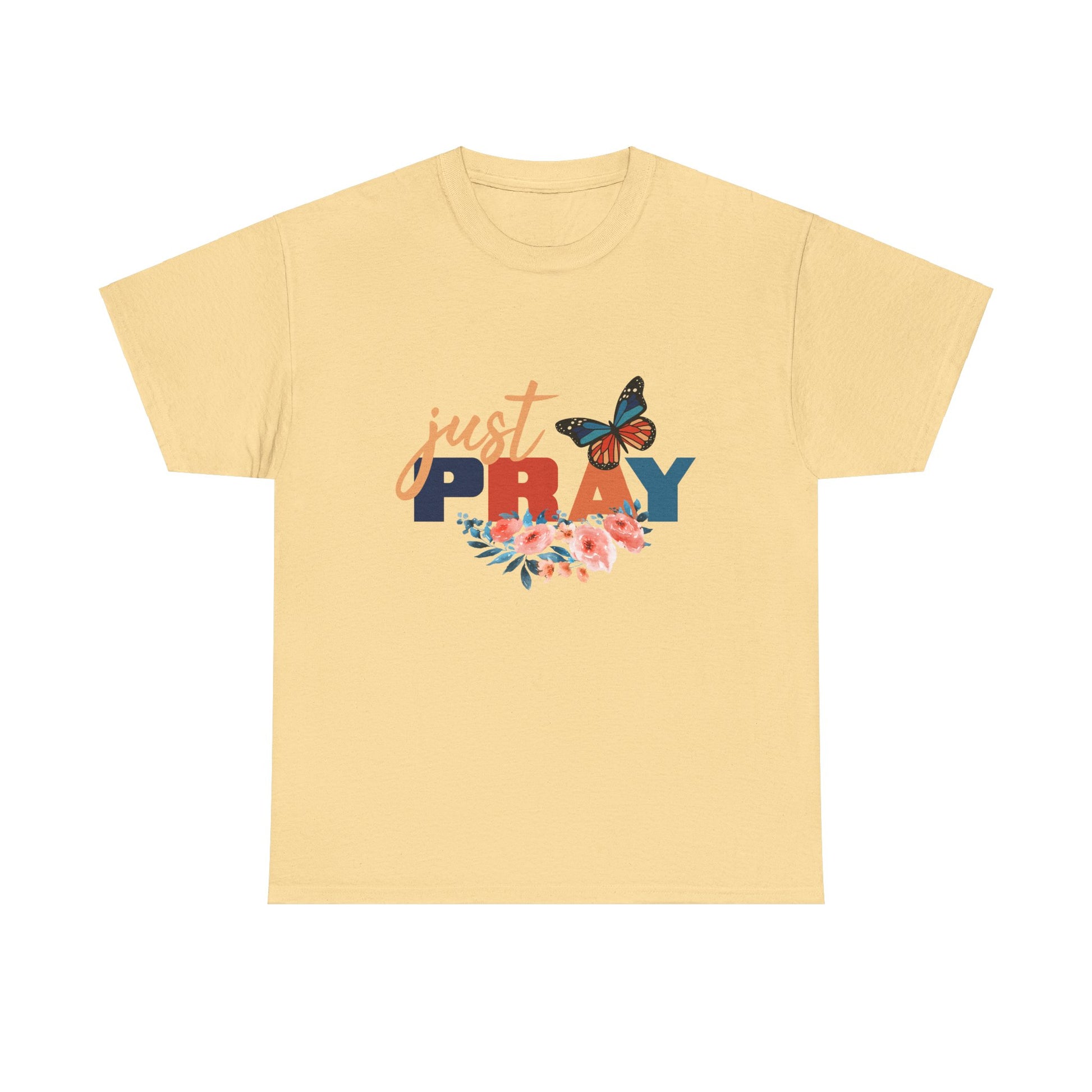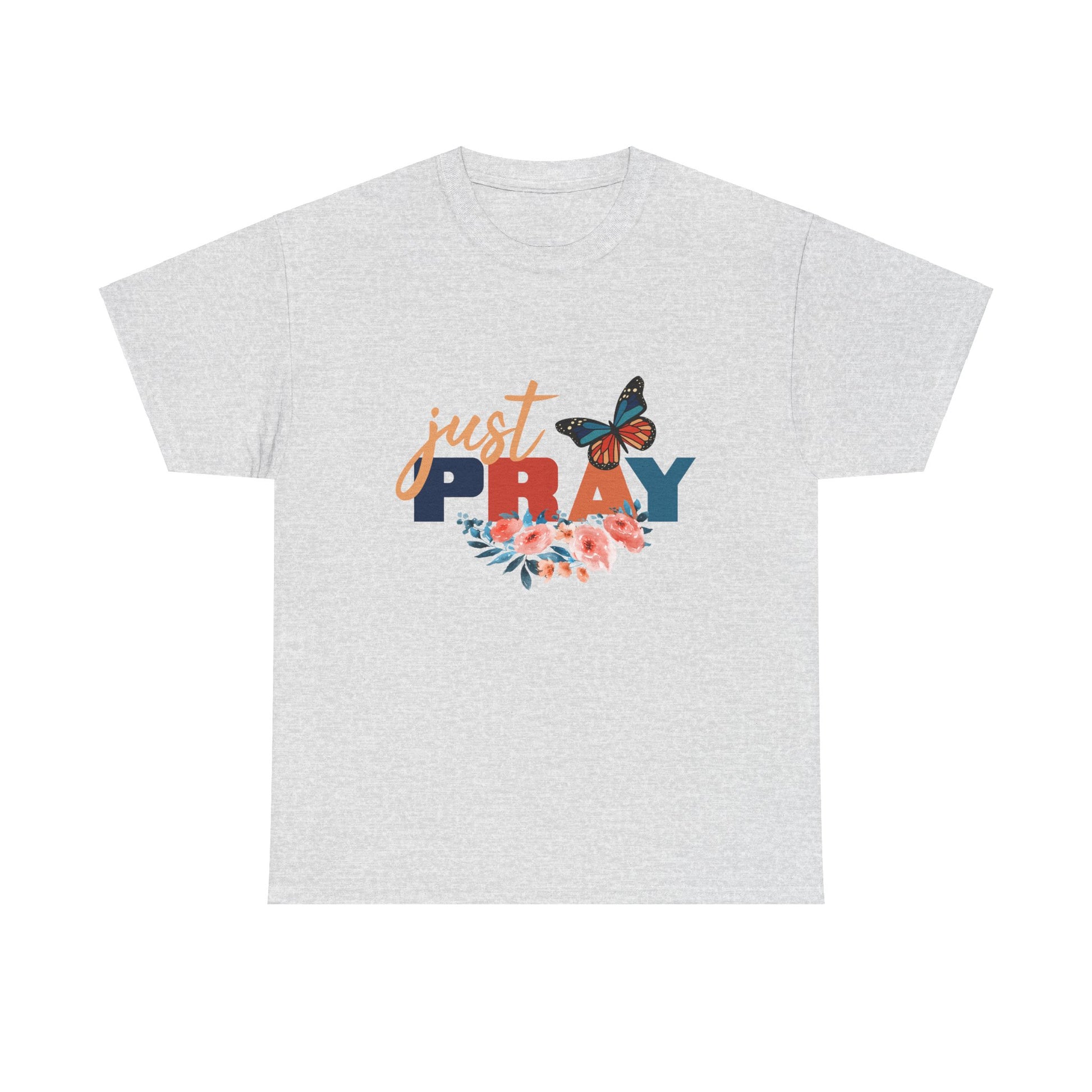 Embrace a message of hope and faith with our "Just Pray" t-shirt. It features a vibrant butterfly design that symbolizes transformation and new beginnings. It is a perfect addition to your wardrobe or a thoughtful gift for someone special.