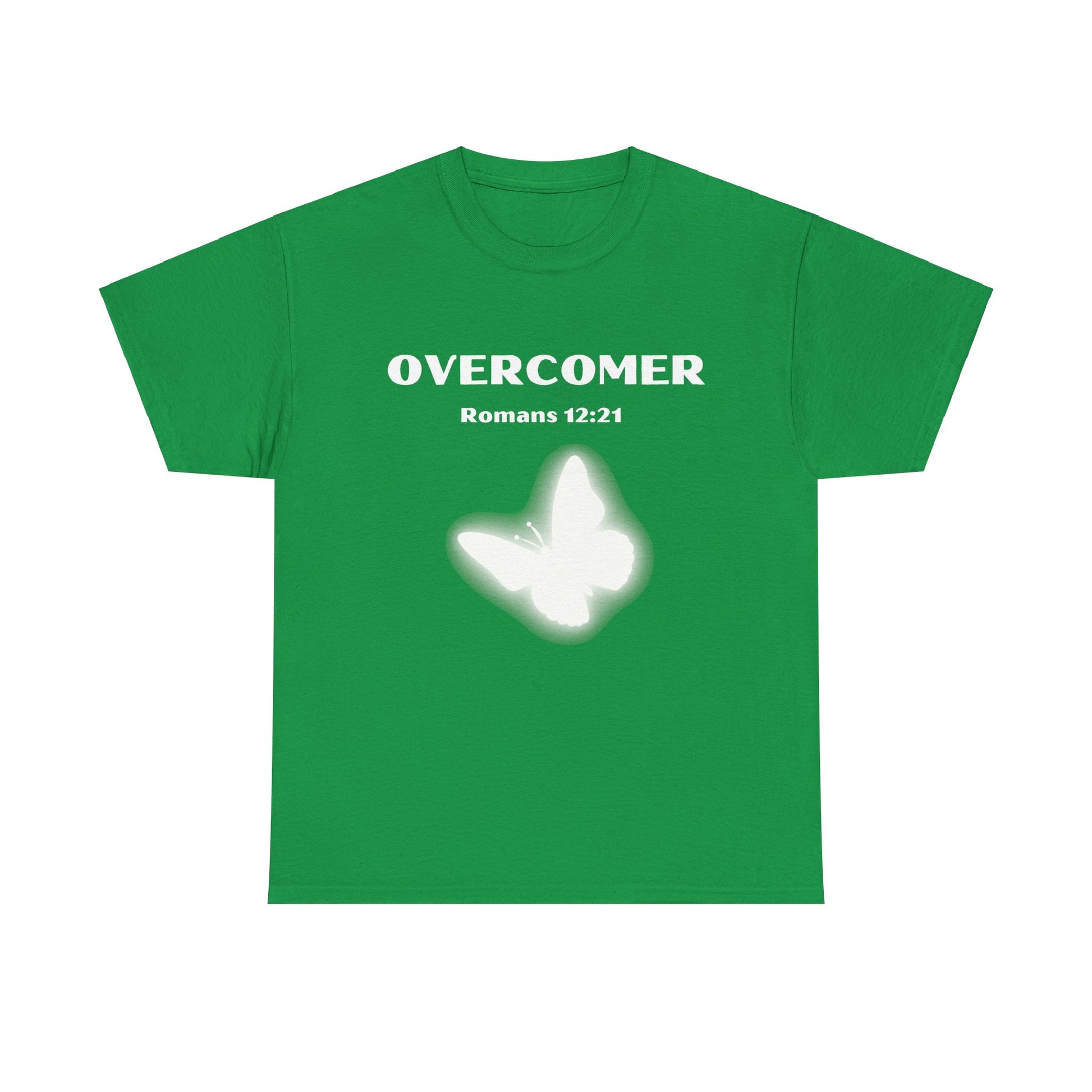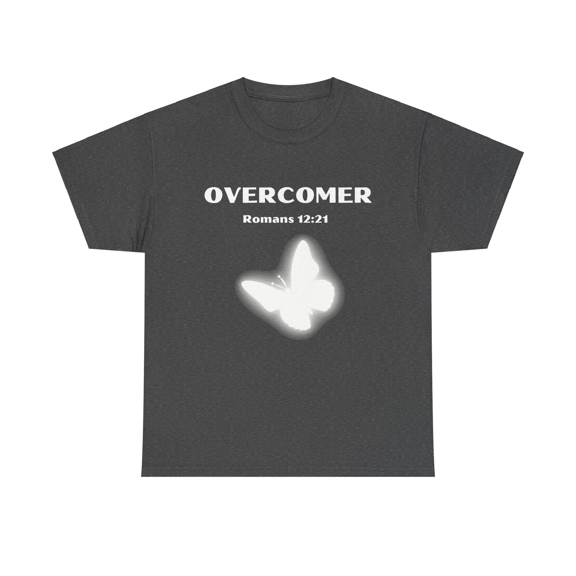 Celebrate your resilience with our "Overcomer, Romans 12:21" T-shirt, featuring a butterfly in flight. This uplifting design embodies the spirit of overcoming challenges and rising above, inspired by a powerful biblical message.