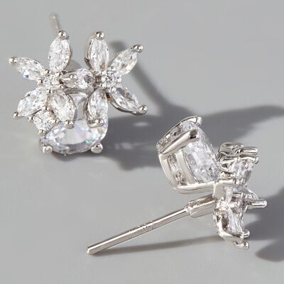 Zircon 925 Sterling Silver Flower Stud Earrings